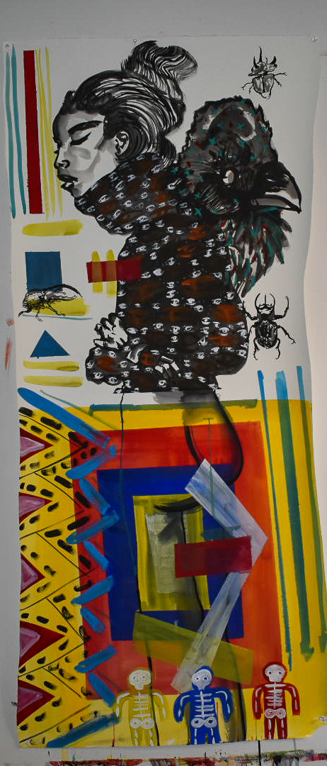 Hand-painted original artwork on cold pressed acid-free watercolor paper. Made of Indian ink, watercolor, and gouache. 4.5 ft x 2.5 ft