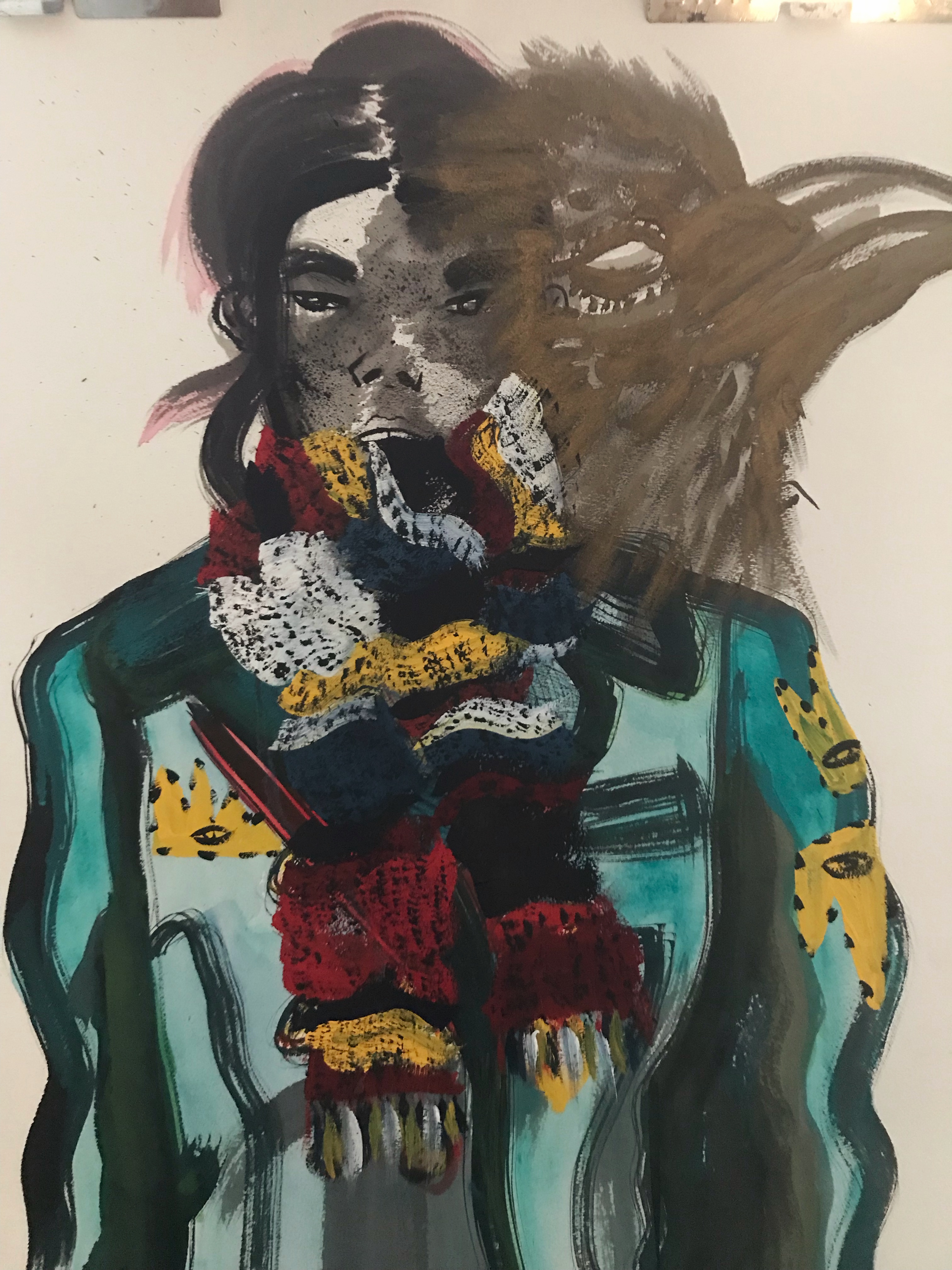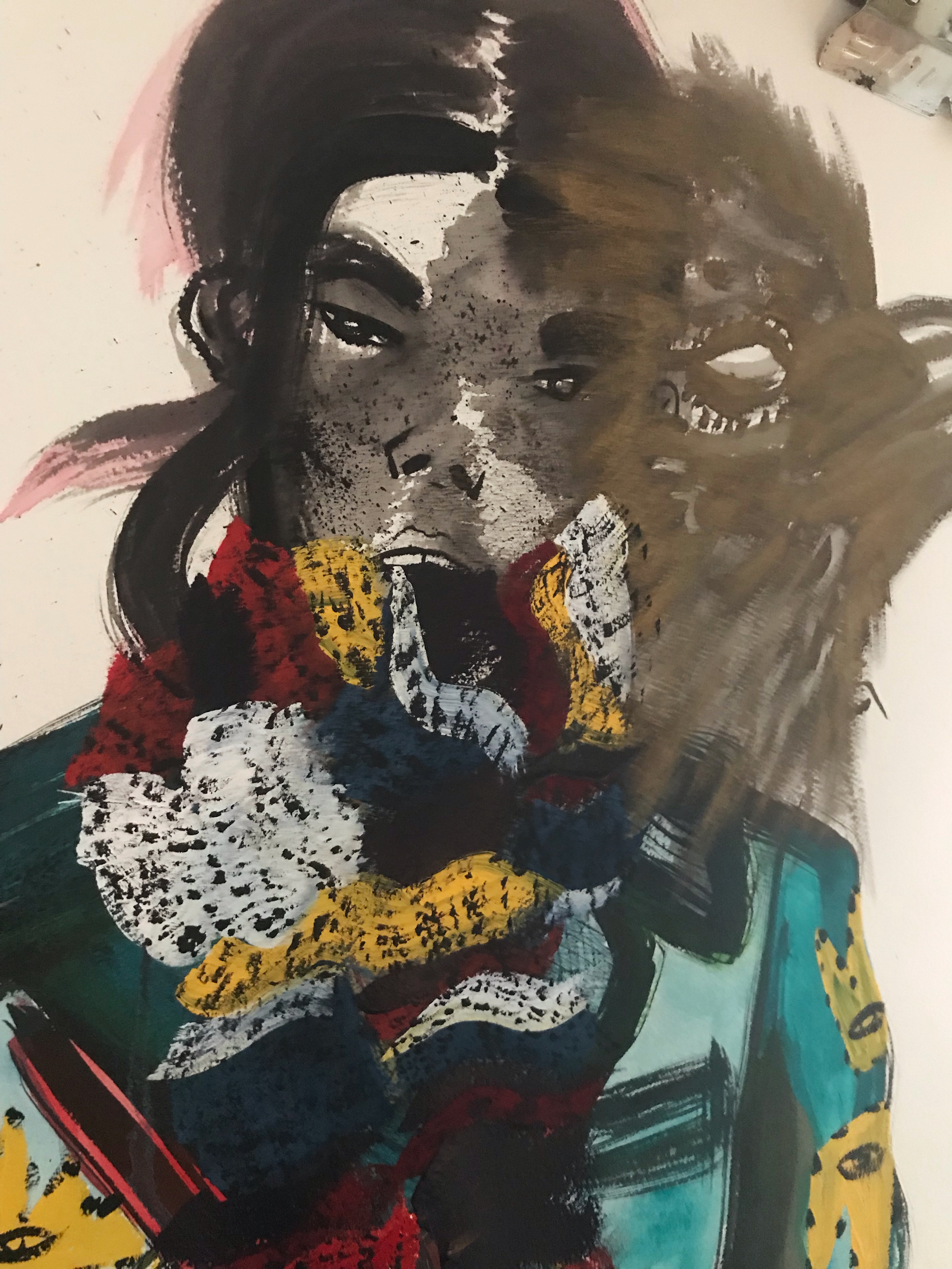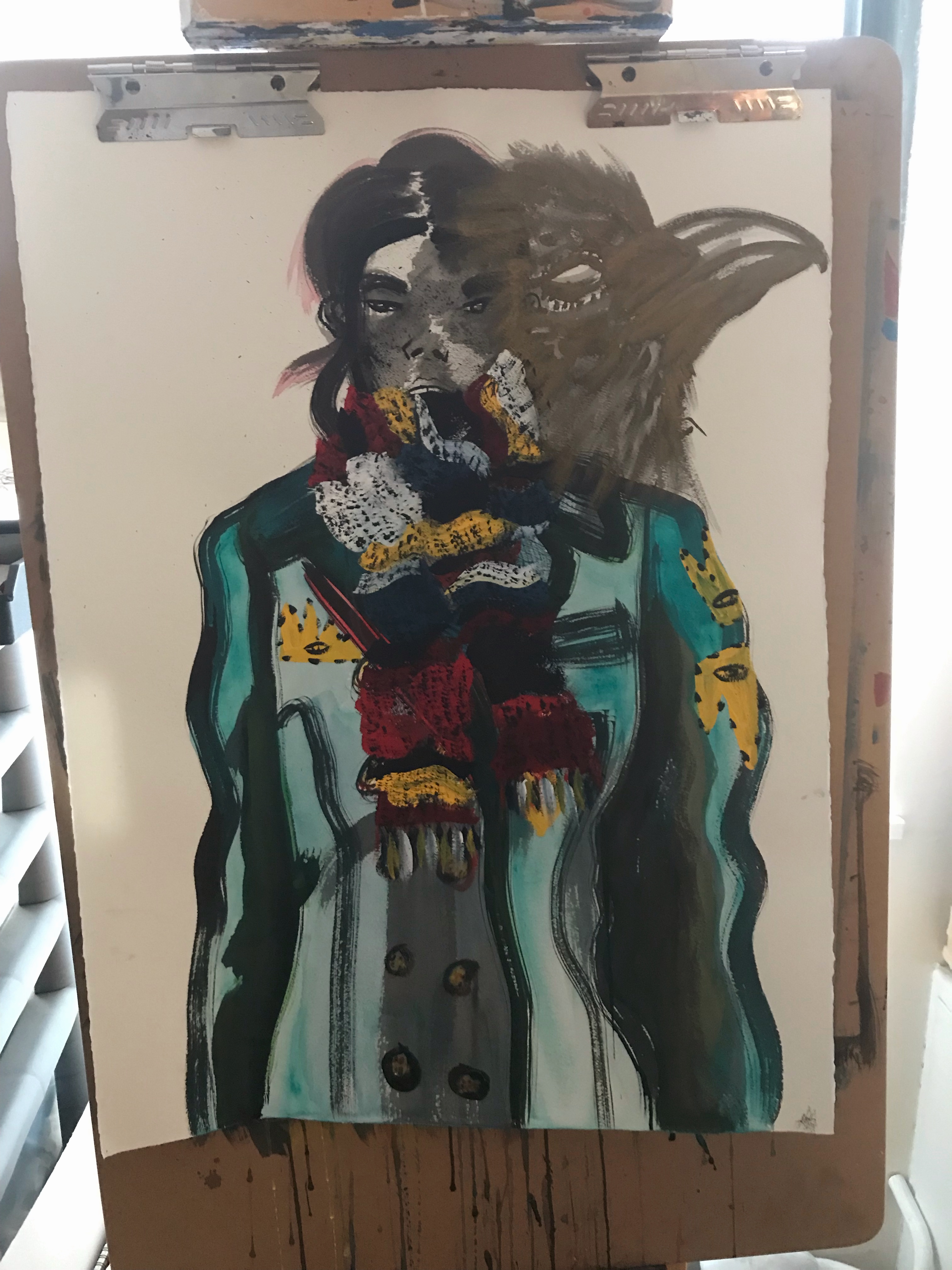 Handmade painting by Jawara Blake. 11" x 22.5 " in Watercolor, gouache and ink on cold pressed thick water color paper.
