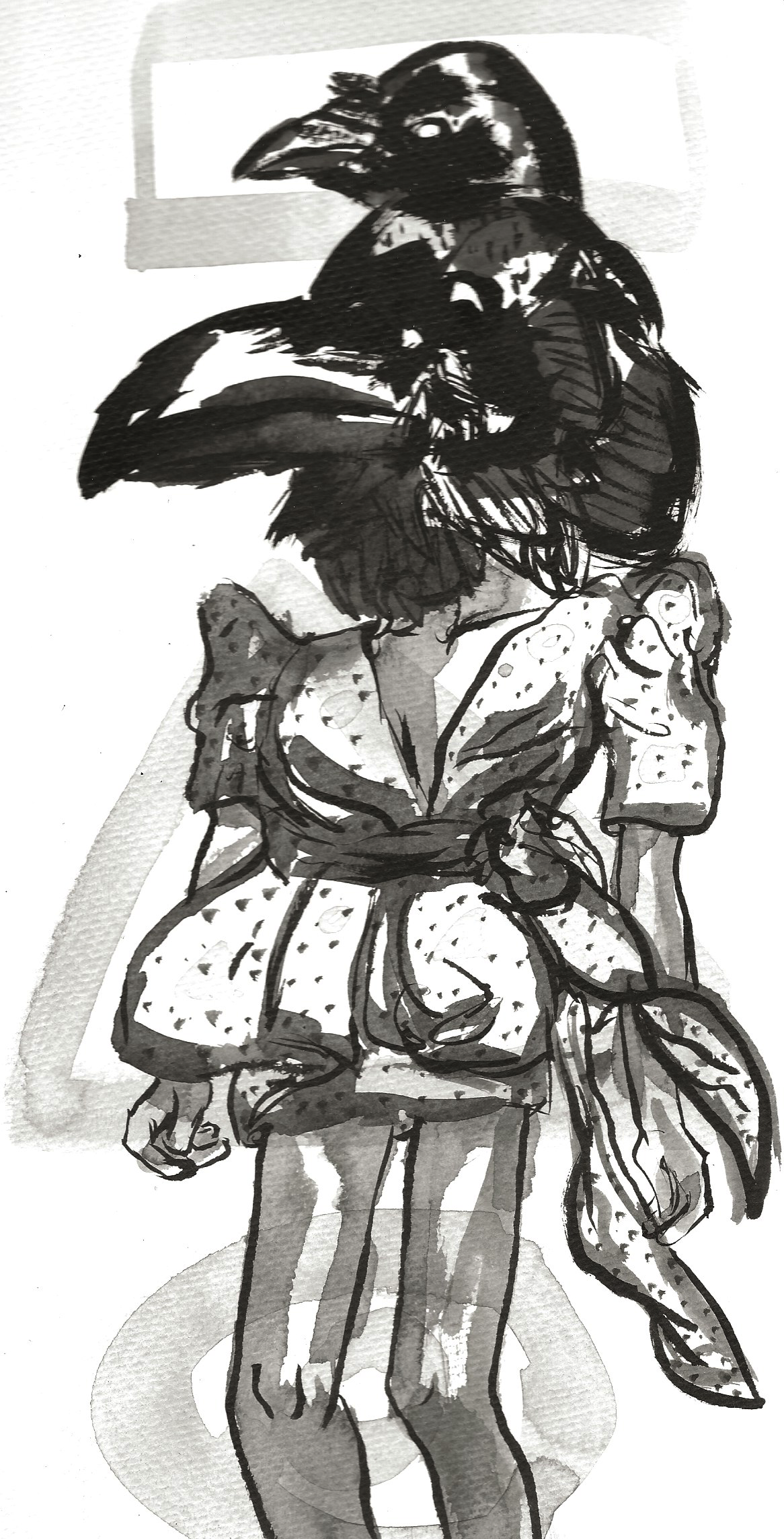 8.5×11 in, 22×28 cm 20 pages original ink paintings of surrealist crows.